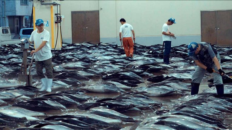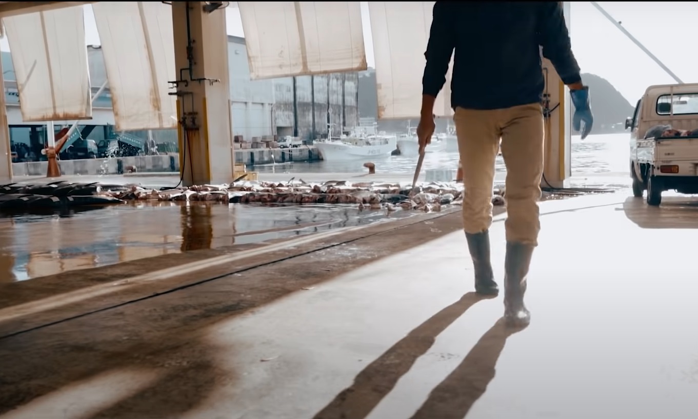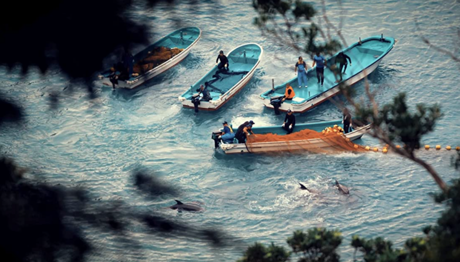감독은 검문을 자신의 정의 집행에 대한 카르텔의 저항이라 편리하게 주장합니다. 여느 바닷가에나 있을 경계 경비 중인 해경은, 자신들을 감시하기 위한 반 지구적 세력의 박해라 판단하는 식이죠. 자신의 확신을 증명하기 위한 중립 증거를 내미는 대신 확신에 확신을 더해줄 이름 모를 시민운동가라는 사람들의 증언이 마구잡이로 동원됩니다. 불쾌할 정도로 감정 호소가 범람합니다. 너무 노골적이라 헛웃음이 나올 정도로 공포 마케팅과 불안감 조장이 범람합니다. 영화 내내 야쿠자, 우익, 도청이라는 코드를 반복적으로 관객의 뇌리에 새기기 위해 노력합니다. 수산 시장에 다랑어와 상어가 잡혀 있는 걸 보여주더니 갑자기 또 다른 환경운동가가 나타나 마피아를 운운하면 대체 어쩌자는 건가 싶죠. 플라스틱 문제로 시작된 영화가 갑자기 동물원 돌고래의 동물 복지로 마구잡이 널을 뛰는 건 관객으로 하여금 죄책감을 자극하겠다는 비열한 속셈입니다.