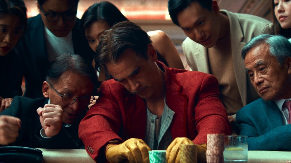 당장 어지러운 마카오가 이목을 끈다. 파편화된 과시적 요소들의 합성된 웅장함은 '거대하면서 공허한 공간'으로 구현되고, 감독은 그런 마카오를 도박 중독자의 왜곡된 심리가 투사된 비현실적 연옥이라 규정한다. 나약한 영혼을 가두어 스스로 파괴하는 순환적 행동, 중독의 본질을 시각화하는 것이다. 연옥으로서의 마카오는 내내 주인공이 짊어진 영적 결핍과 탐욕스러운 외양 사이의 모순을 증폭시킨다. 그 안에서 도일은 낯선 공간의 익명성에 일시적인 해방감을 느끼기도 하지만, 이내 억압적인 크기와 치장에 압도되어 고립되길 반복한다. 그래서 관객이 목도하는 도일의 화려함은 본질적으로 내용 없는 경험이다. 끊임없이 물질적 자극을 찾아 헤맴에도 결코 만족하지 못하는 상태에 고립된 불쌍한 인물인 것이다.