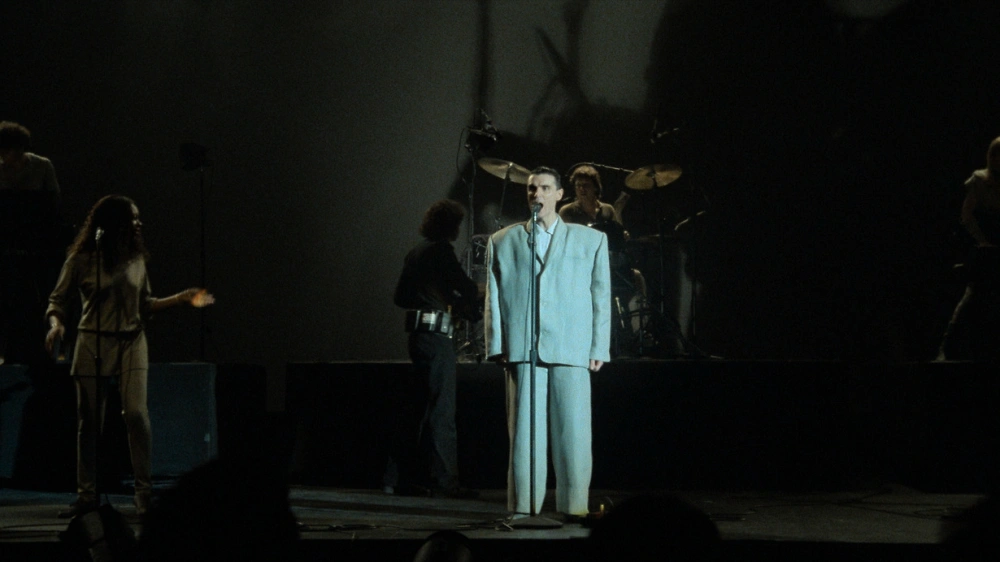 티나 웨이머스, 크리스 프란츠, 제리 해리슨 그리고 데이비드 번. 토킹 헤즈다. 전설적인 뉴웨이브, 포스트 펑크 밴드의 1983년 팬테이지스 극장 공연 실황은 독창적인 사운드뿐 아니라 프레젠테이션을 포함한 모든 면에서 탁월하다. 스스로 120만 달러를 조달한 독립 제작 공연은 스튜디오의 간섭 대신 순수한 역동성으로 가득하기에, 양들의 침묵, 필라델피아의 감독 조나단 드미가 밴드의 비전을 영화 언어로 번역함에 있어 타협하지 않을 수 있었다. 연출의 핵심은 자연주의적 몰입이다. 감독은 백스테이지 장면이나 인터뷰, 객석의 반응 등 관습적인 록 다큐멘터리 요소를 모조리 베재한 후 오직 공연자들에 집중한다. 영화의 관객을 과거 기록의 관찰자가 아닌 무대 위에 올라 멤버들과 함께 호흡하는 참여자로 재정의하는 것이다.